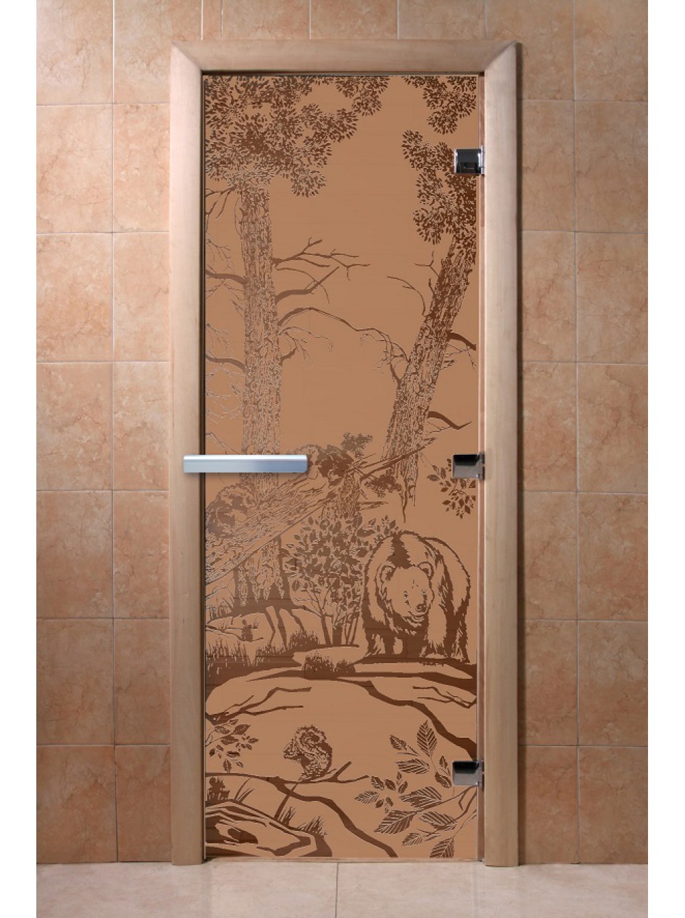 Размер по коробке: 1900х700 мм Коробка: осина/ольха Полотно: закаленное стекло 8 мм Петли: хромированные 3 шт Ручки: 2 шт (дерево/алюминий) В комплекте 2 магнита