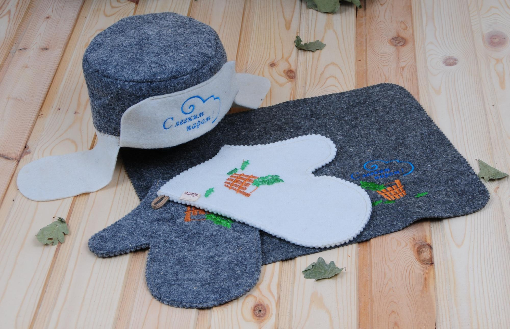 Набор войлок серый «Хозяин бани» (шапка, коврик, рукавица, тапки)