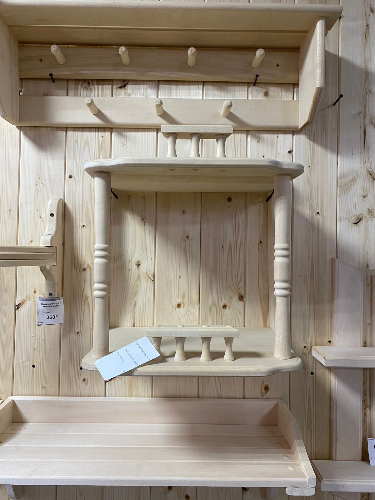 Полка вешалка Ромбы 7 пешек с надписью