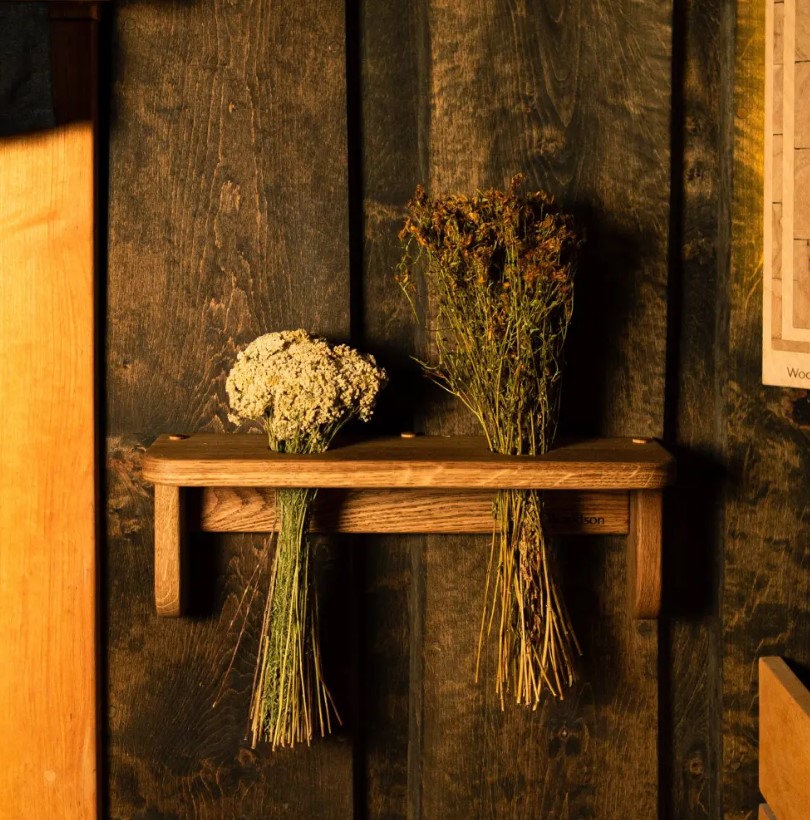 Полка для трав и веников Woodson mini изготовлена вручную из массива ольхи.