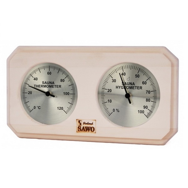 Измерительный прибор для парного помещения. Показывает температуру и влажность. Материал: осина Способ измерения: механика, спирать накаливания