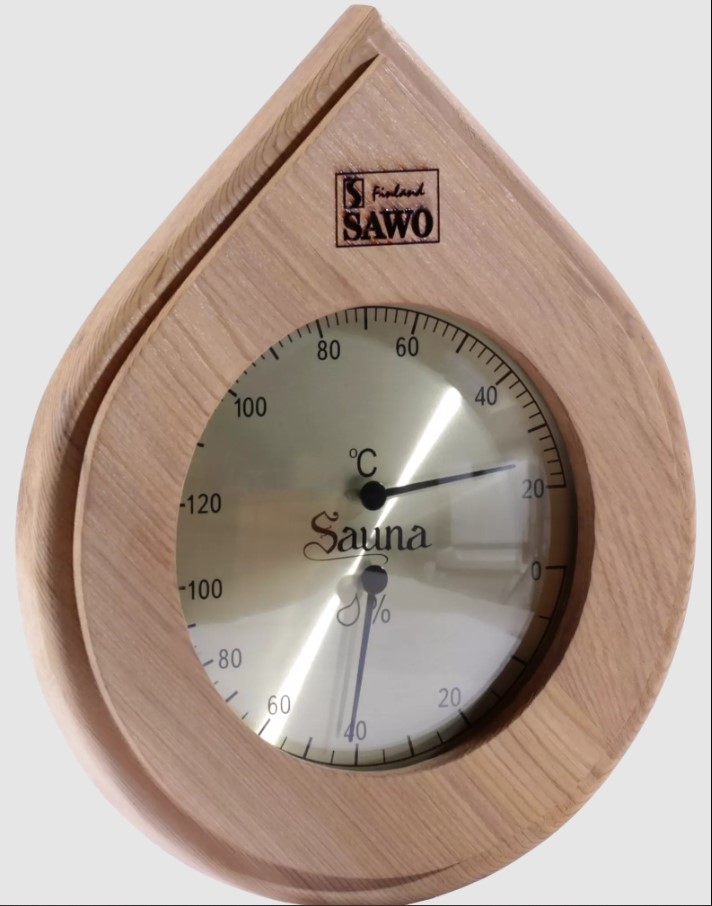 Измерительный прибор для парного помещения. Показывает температуру и влажность. Материал: Термокедр Способ измерения: механика, спирать накаливания