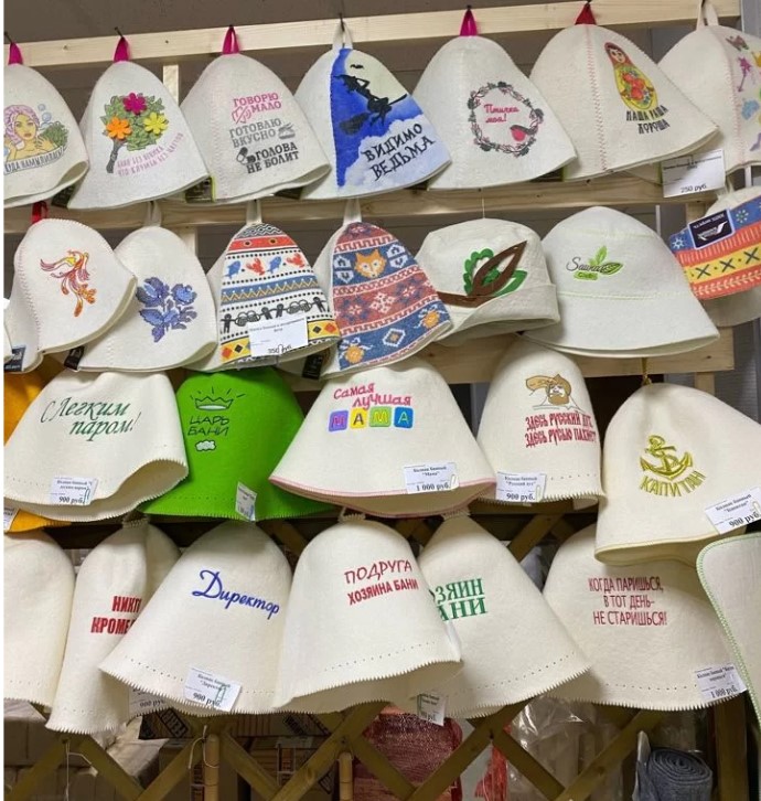 В наличии огромный выбор шапок для бани. материал шерсть и фетр.