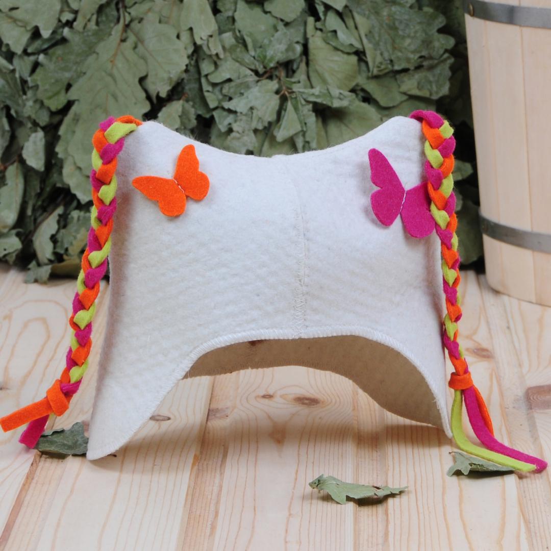 Количество товара Шапка малая "Бабочки", с косичками, войлок