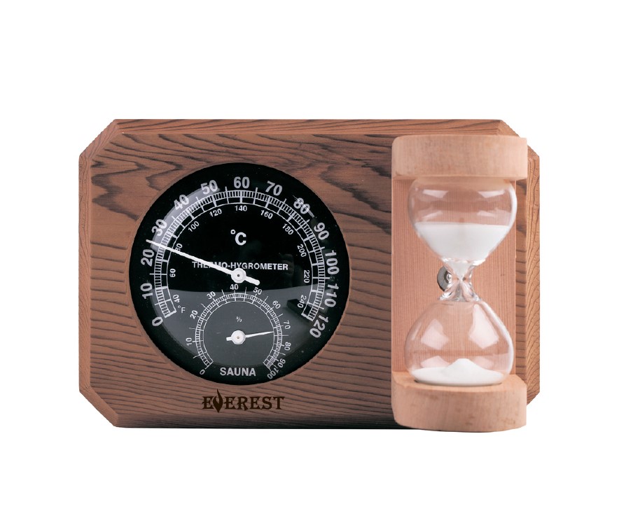 / Термогигрометр мини Эверест с часами кедр Black