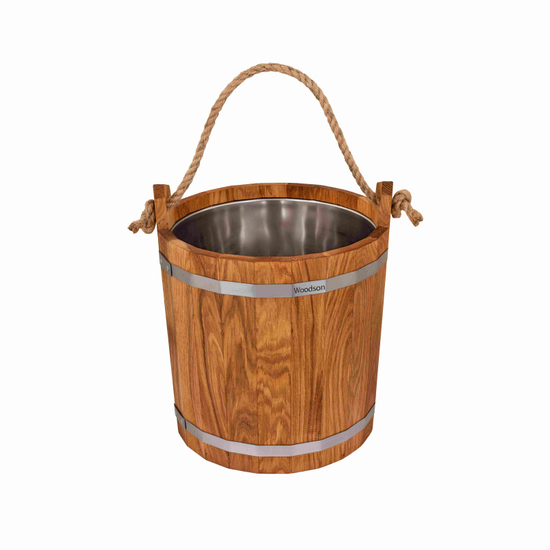 Данный аксессуар для бани из массива дуба предназначен для запаривания веников объёмом 12 литров, имеет нержавеющую вставку и удобную веревочную ручку для переноски. Запарник подходит для переноски отваров, а при добавлении льда — для использования контраста. По всей окружности сделана клёпка, которая имеет толщину 15 мм с двумя или тремя обжимными кольцами из нержавеющей стали. Благодаря этому, запарник сохраняет форму и полностью исключает возможность протекания ёмкости. Вода в таком запарнике сохраняет свою температуру гораздо дольше, а уход и очистка такого изделия гораздо проще, чем для моделей без вставки.